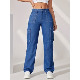 Blue Star Shape Patchwork Straight Jeans, Loose Fit Slant Pockets Non-Stretch Denim Pants, Women's Denim Jeans & Clothing