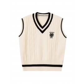 Smile Face Pattern Hooded Knitted Sweater, Casual Drawstring Long Sleeve Oversized Sweater, Women's Clothing